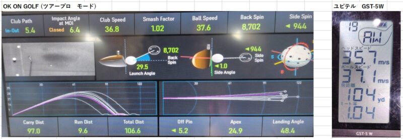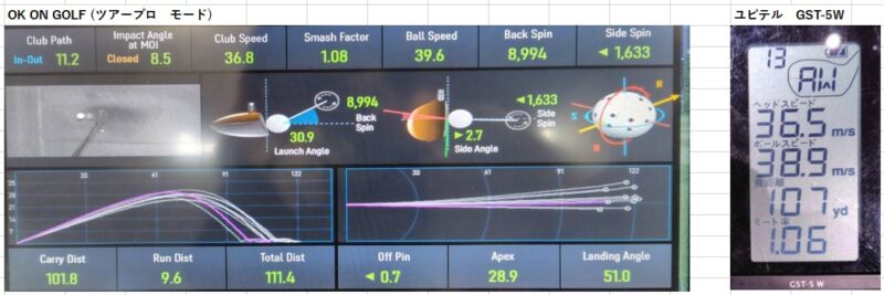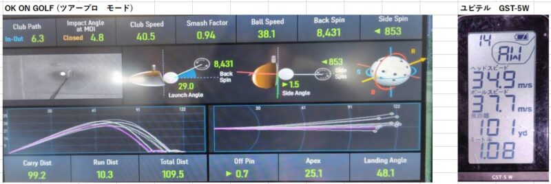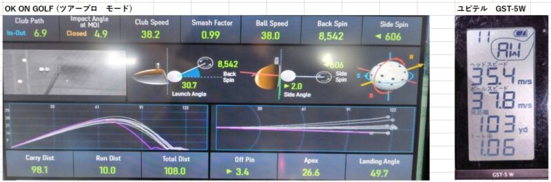 データはこれまで通り「OKonGOLFのツアープロモード」と「ユピテル GST-5 W」で計測していきます。