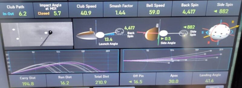 打ち出し角度13.4度、初速59.0m/s、キャリー194.8ヤード。
