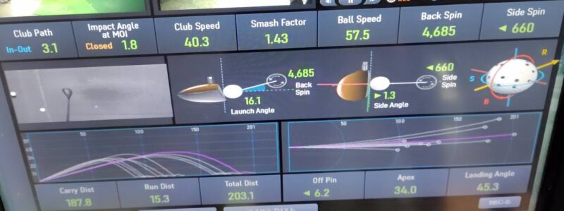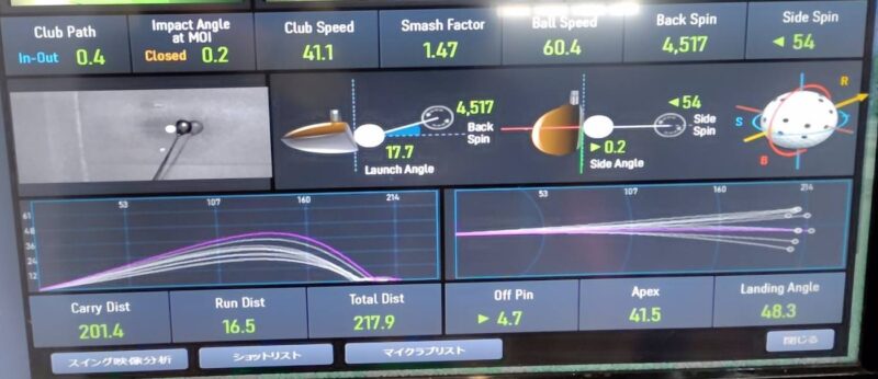 打ち出し角度17.7度、初速60.4m/s、キャリー201.4ヤード。