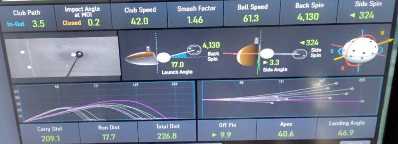 打ち出し角度17度、初速61.3m/s、キャリー209.1ヤード。