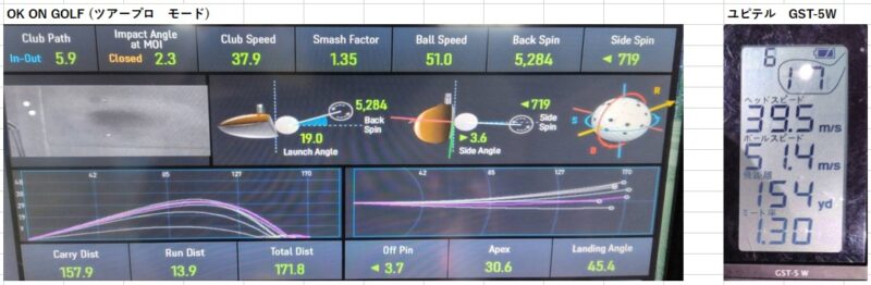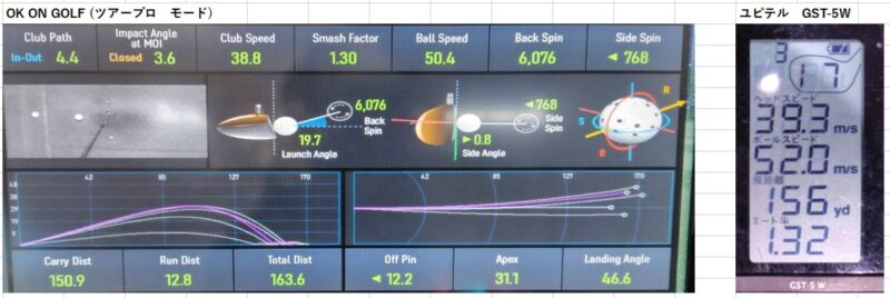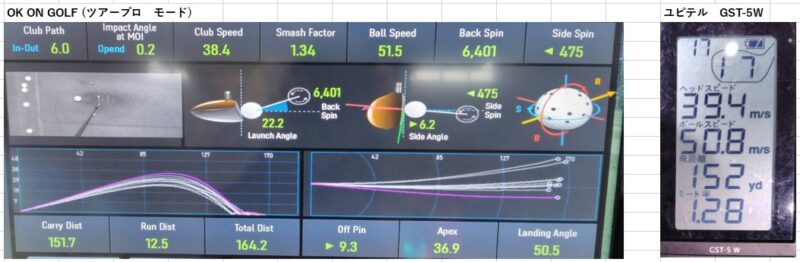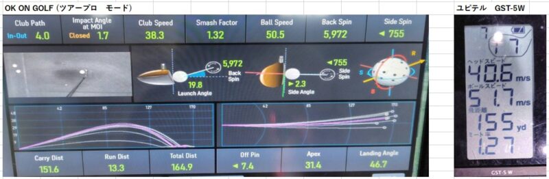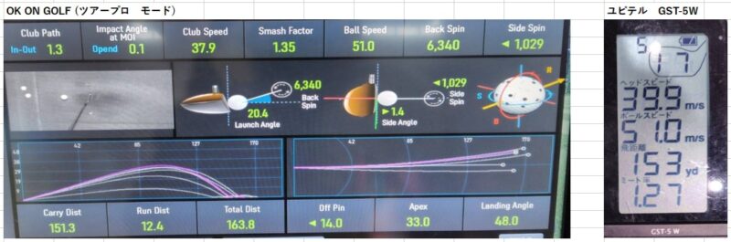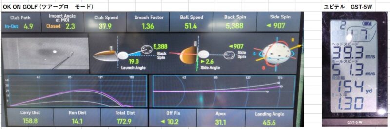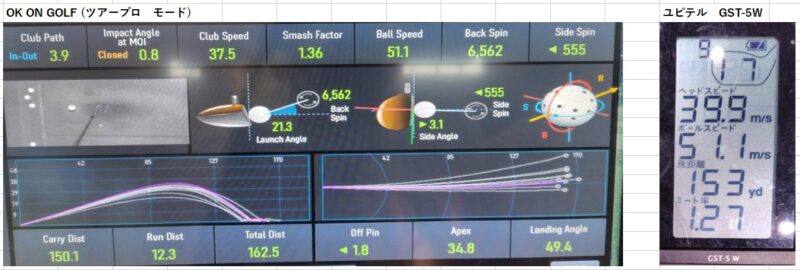 データはこれまで通り「OKonGOLFのツアープロモード」と「ユピテル GST-5 W」で計測していきます。